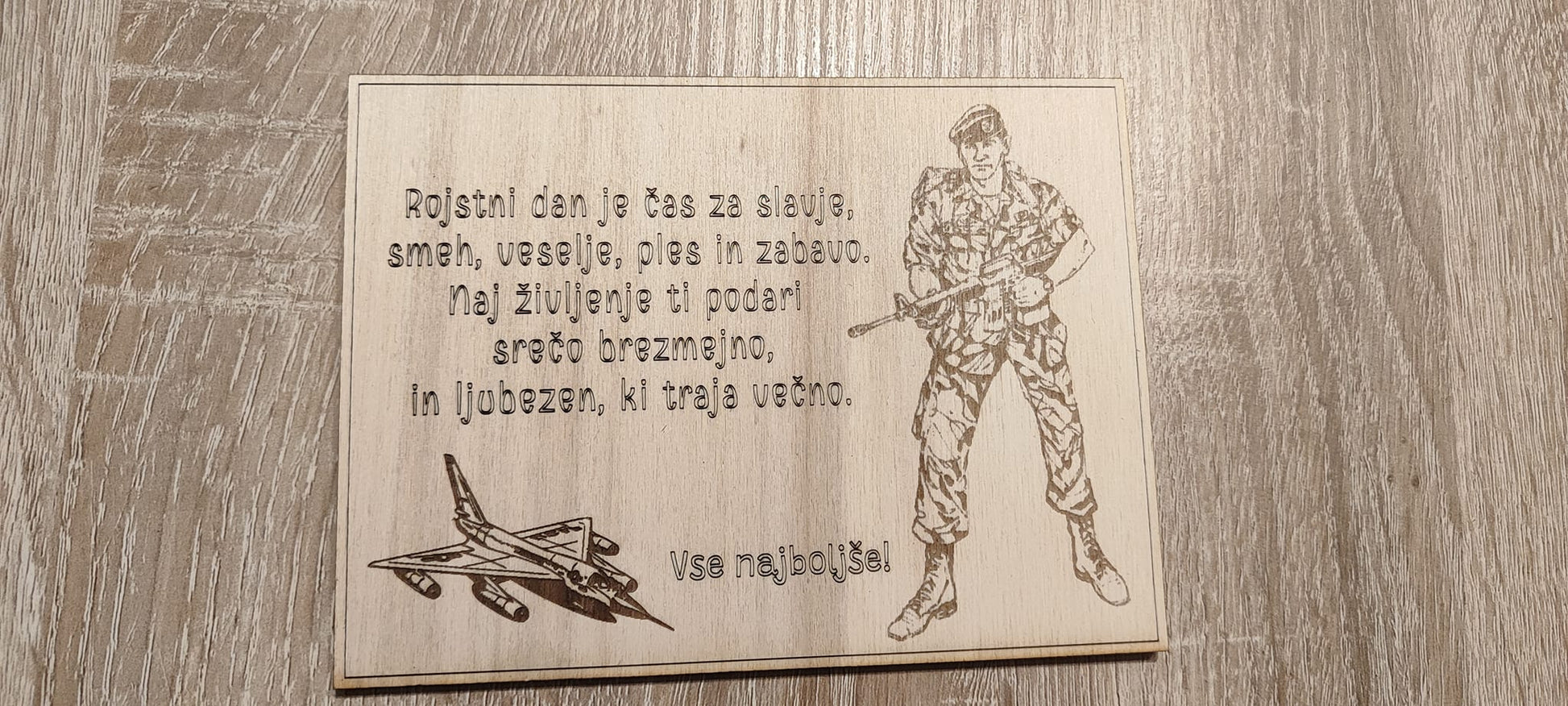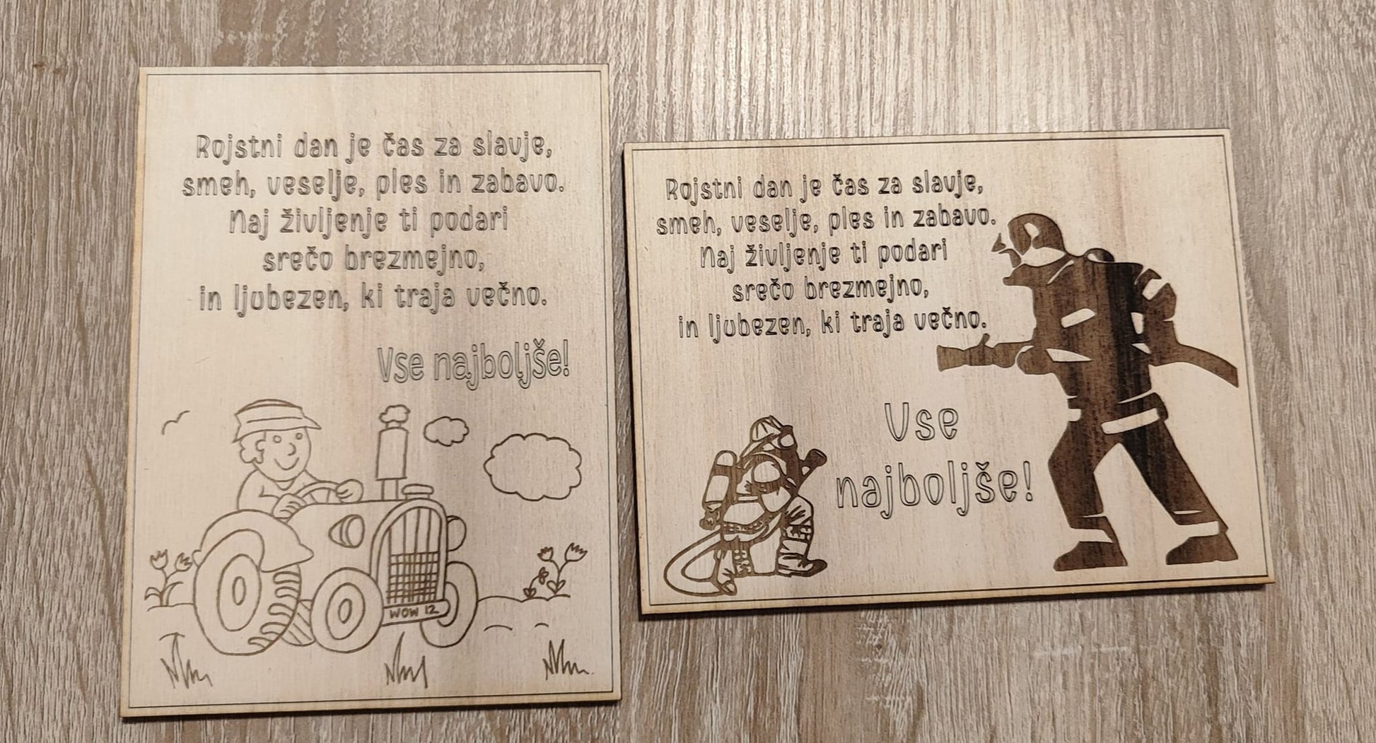 Lesena voščilnica s tematskim motivom (hobi / poklic)