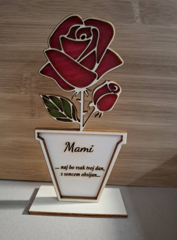 Podarite rožo, ki nikoli ne oveni. Ta ročno izdelana lesena vrtnica stoji na elegantnem podstavku in nosi posvetilo po vaši izbiri – popolna za rojstni dan, obletnico, valentinovo ali kar tako, iz ljubezni.