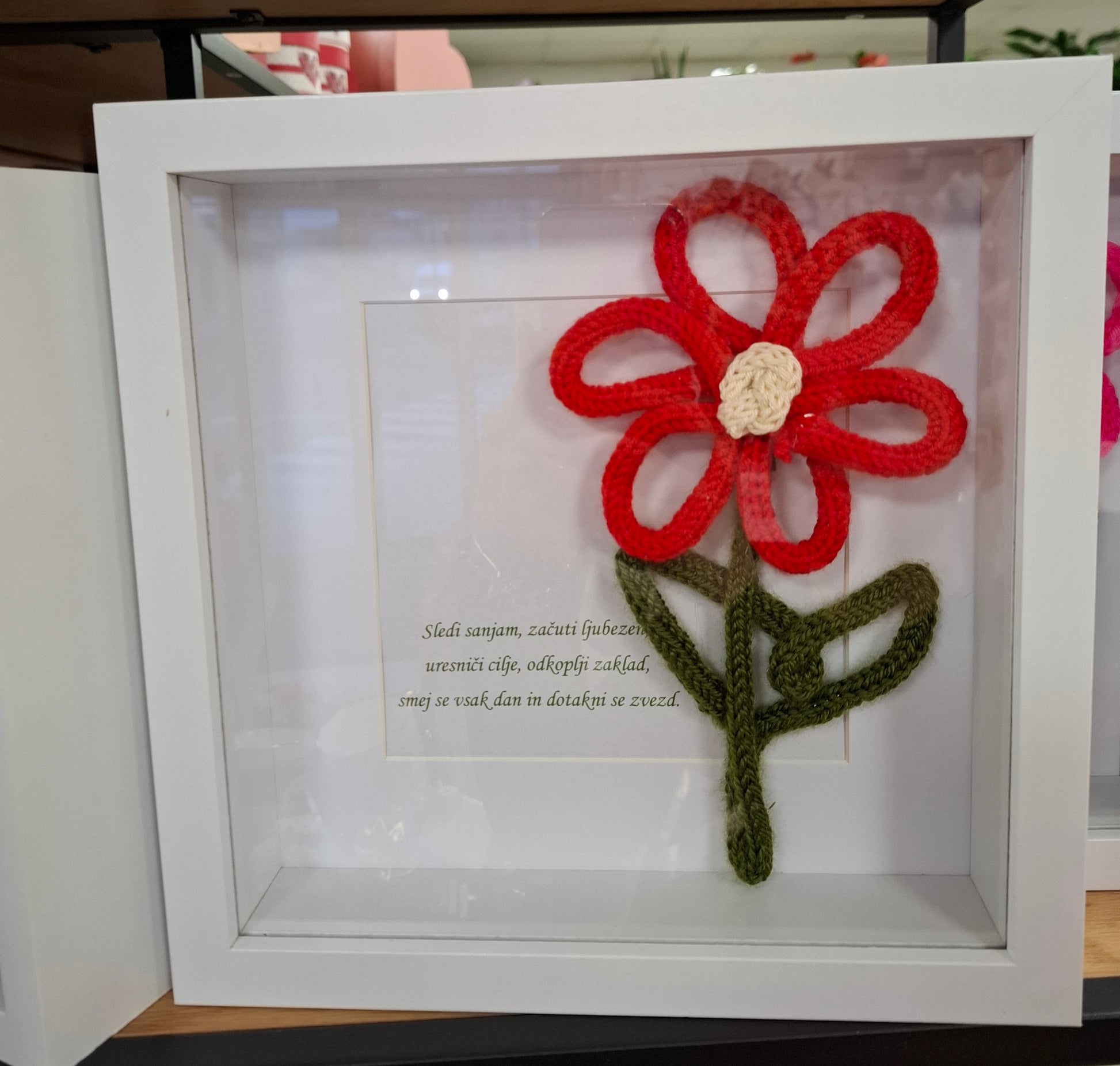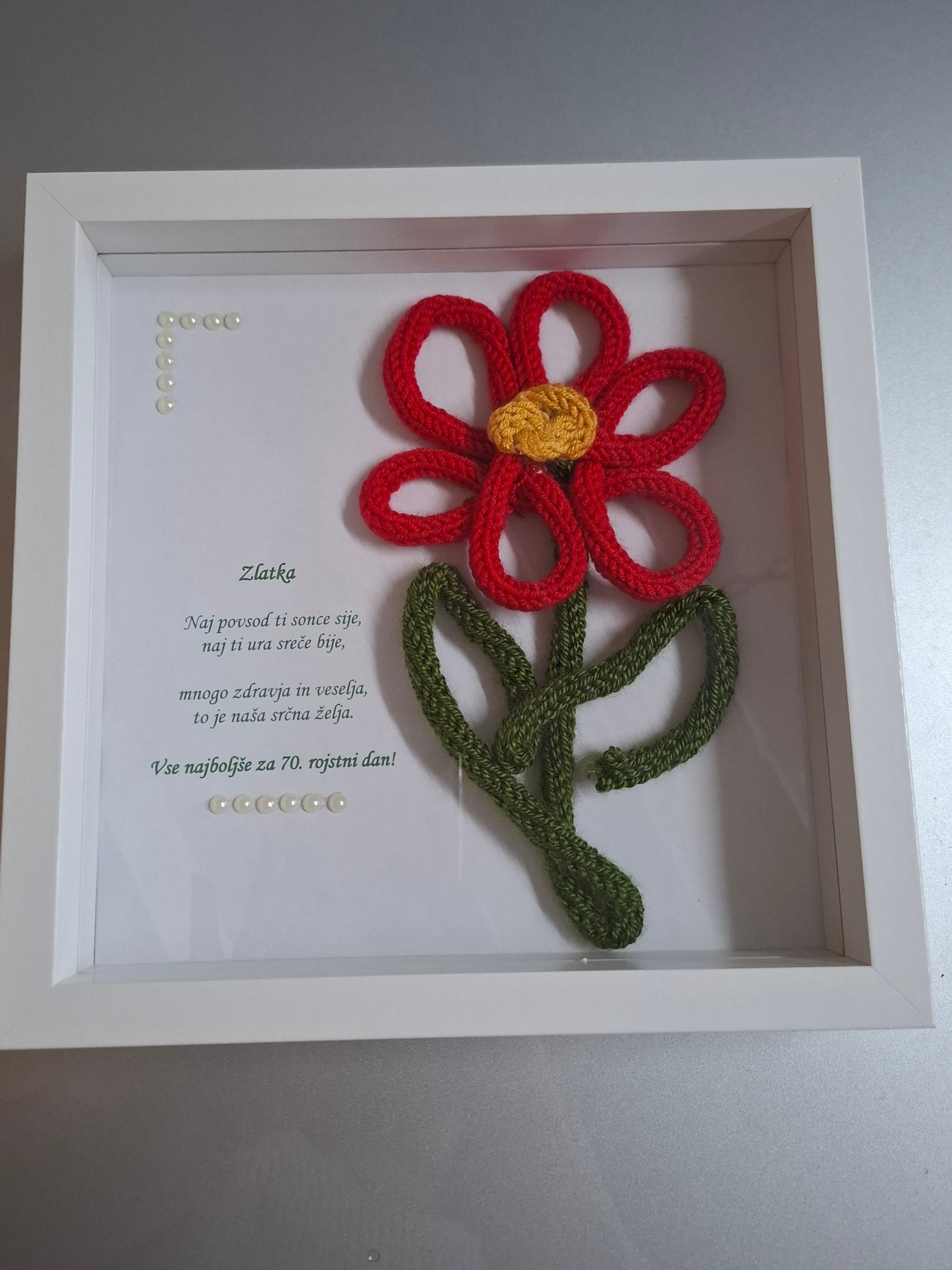 Unikaten dekorativen okvir z nežno rožico in posvetilom po vaši želji.