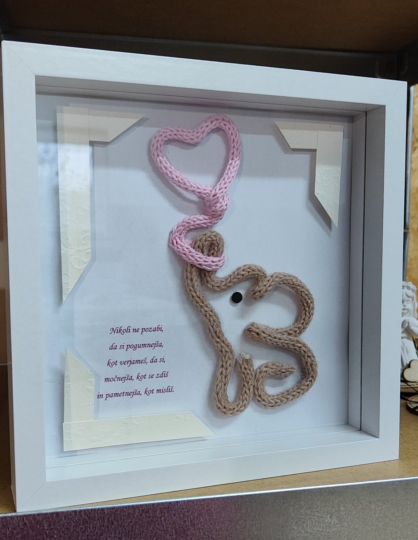 Opis izdelka: Slonček iz kvačkane vrvice Postavljen v eleganten okvir