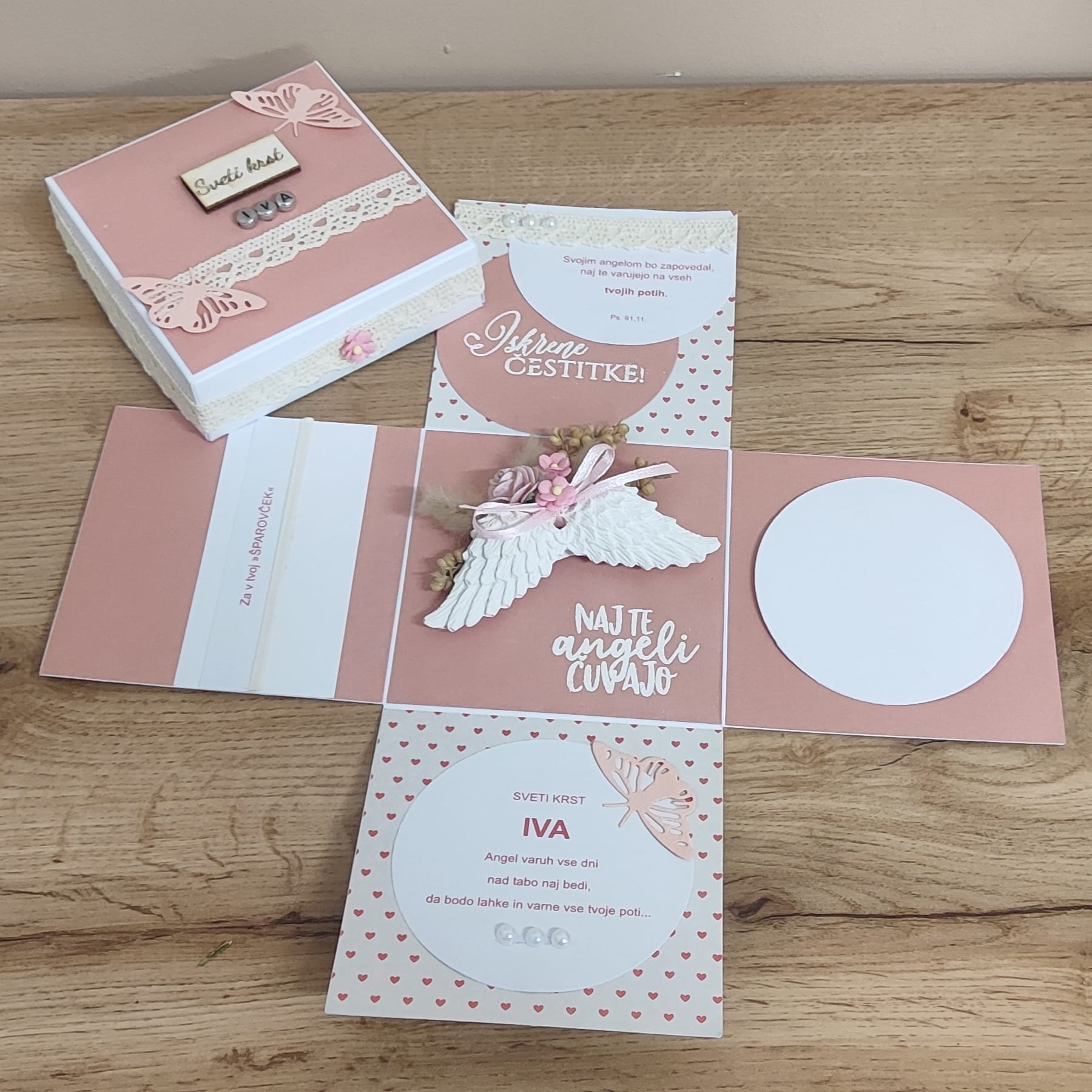 Škatlica presenečenja je unikatno darilo s prostorom za denar in krili.